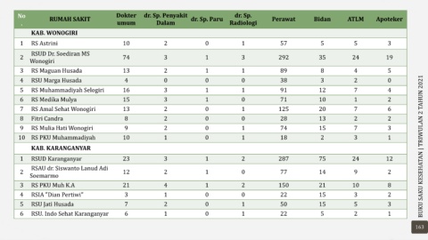 No RUMAH SAKIT Dokter dr. Sp. Penyakit dr. Sp. Paru dr. Sp. Perawat Bidan ATLM Apoteker