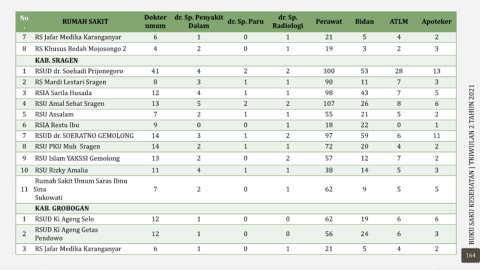 No RUMAH SAKIT Dokter dr. Sp. Penyakit dr. Sp. Paru dr. Sp. Perawat Bidan ATLM Apoteker