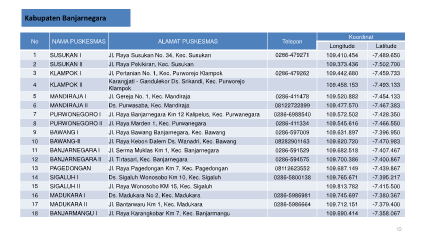 13 PAGEDONGAN Jl. Raya Pagedongan Km 7, Kec. Pagedongan 08112623552 109.687.149 -7.439.867