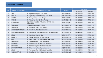 4 PURING Jl. Petanahan No. 19, Kec. Puring 0287-5526315 109.523.224 -7.736.611
