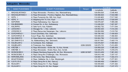 No NAMA PUSKESMAS ALAMAT PUSKESMAS Telepon