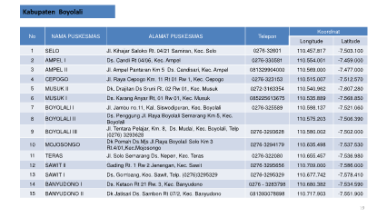 7 BOYOLALI I Jl. Jambu no.11, Kal. Siswodipuran, Kec. Boyolali 0276-325589 110.598.137 -7.521.060