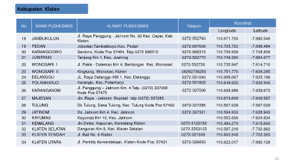 21 JUWIRING Tanjung Km 1, Kec. Juwiring 0272-552770 110.749.390 -7.664.677