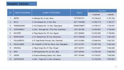 4 SUKOHARJO Jl. Solo - Wonogiri No. 173 A, Kec. Sukoharjo 0271-591028 110.853.897 -7.702.833