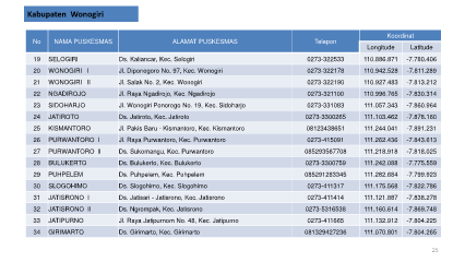 25 KISMANTORO Jl. Pakis Baru - Kismantoro, Kec. Kismantoro 08123438651 111.244.041 -7.891.231