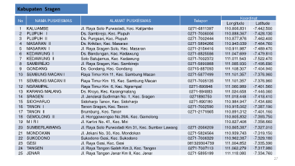 25 JENAR Jl. Raya Tangen Jenar Km 8, Kec. Jenar 0271-5895199 111.118.080 -7.334.760