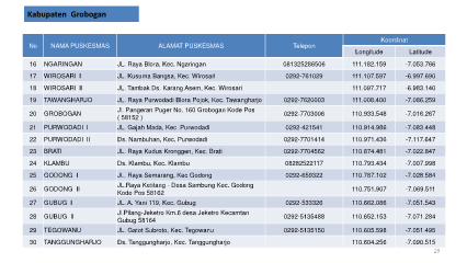 29 TEGOWANU JL. Gatot Subroto, Kec. Tegowanu 0292-5135150 110.605.598 -7.051.495
