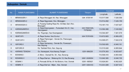 14 DEMAK II Jl. Raya Demak - Mijen , Kec. Demak 0291-4284443 110.644.699 -6.887.942