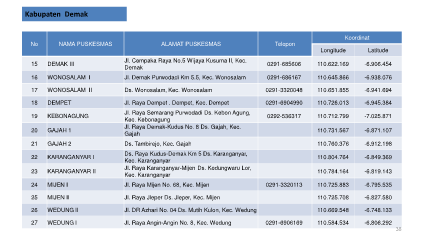 18 DEMPET Jl. Raya Dempet . Dempet, Kec. Dempet 0291-6904990 110.726.013 -6.945.384