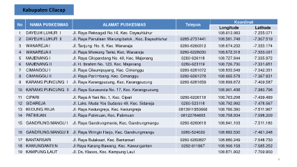 12 SIDAREJA Jl. Laks. Muda Yos Sudarso 49, Kec. Sidareja 0280-523118 108.792.992 -7.478.567