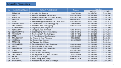 No NAMA PUSKESMAS ALAMAT PUSKESMAS Telepon
