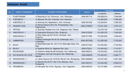 15 PEGANDON Jl. Pahlawan No.10 Ds. Tegorejo , Kec. Pegandon 0294-383705 110.147.865 -6.978.257