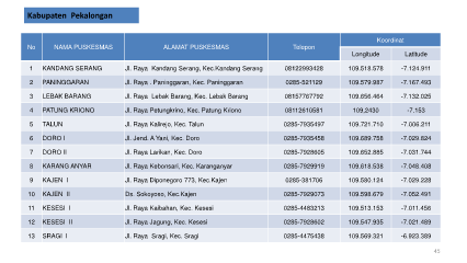10 KAJEN II Ds. Sokoyoso, Kec.Kajen 0285-7929073 109.598.679 -7.052.491