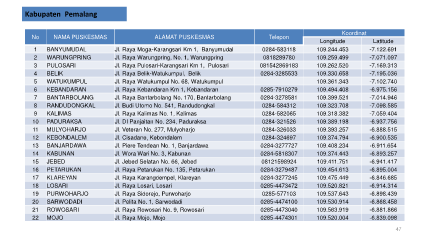 4 BELIK Jl. Raya Belik-Watukumpul, Belik 0284-3285533 109.330.658 -7.195.036