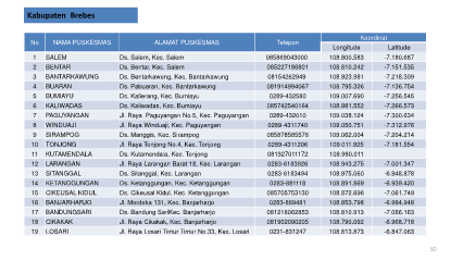 8 WINDUAJI Jl. Raya Winduaji, Kec. Paguyangan 0289-4311740 109.050.751 -7.312.976