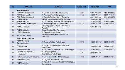 35 RSKB Daerah Panti Nugroho Jl. Letkol Isdiman No 20 Purbalingga 53313 0281-891434 0281-894064