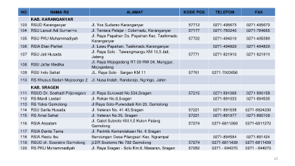 103 RSUD Karanganyar Jl. Yos Sudarso Karanganyar 57712 0271-495673 0271-495673