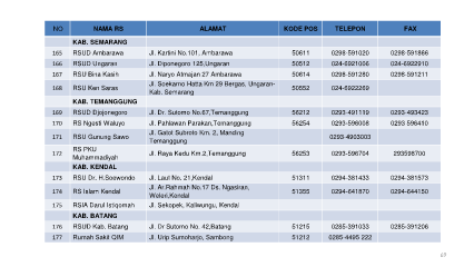 167 RSU Bina Kasih Jl. Naryo Atmajan 27 Ambarawa 50614 0298-591280 0298-591211