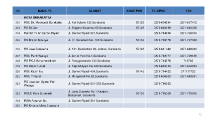 223 RSUD Kota Surakarta 57136 0271-715300 0271-715500