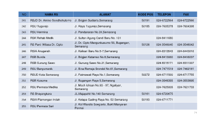 249 RSU Banyumanik Jl. Bina Remaja Srondol No.61,Semarang 024-7471519 024-7462181