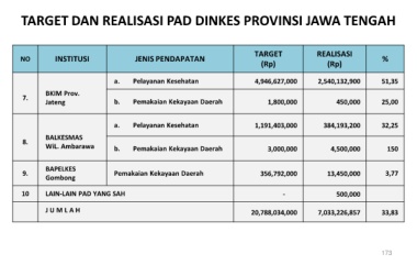 TARGET DAN REALISASI PAD DINKES PROVINSI JAWA TENGAH