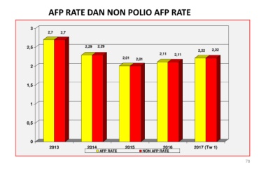 AFP RATE DAN NON POLIO AFP RATE 3 2,7 2,7 2,5 2,29 2,29 2,22 2,22 2,11 2,11 2,01 2,01 2 1,5 1 0,5 0 2013 2014 2015 2016 2017 (Tw 1) AFP RATE NON AFP RATE 78