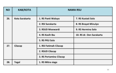26. Kota Surakarta 1. RS Panti Waluyo 7. RS Kustati Solo