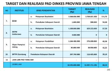TARGET DAN REALISASI PAD DINKES PROVINSI JAWA TENGAH