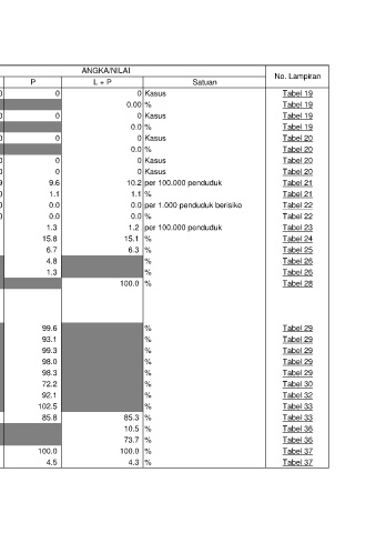 31 Angka Kesakitan Malaria (Annual Parasit Incidence ) 0.0 0.0 0.0 per 1.000 penduduk berisiko Tabel 22