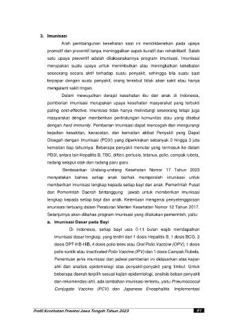 satu upaya preventif adalah dilaksanakannya program imunisasi. Imunisasi
