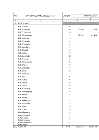 NO SARANA PELAYANAN KESEHATAN JUMLAH RAWAT JALAN RAWAT INAP JUMLAH