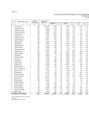 CAKUPAN DAN PROPORSI PESERTA KB PASCA PERSALINAN MENURUT JENIS KONTRASEPSI DAN KABUPATEN/KOTA