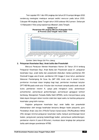Cakupan KN lengkap Jawa Tengah tahun 2023 sebesar 99,2 persen. Sebanyak