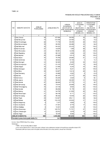 NO KABUPATEN/KOTA JUMLAH BALITA BALITA BATUK MELAKUKAN MELAKUKAN PNEUMONIA PNEUMONIA JUMLAH