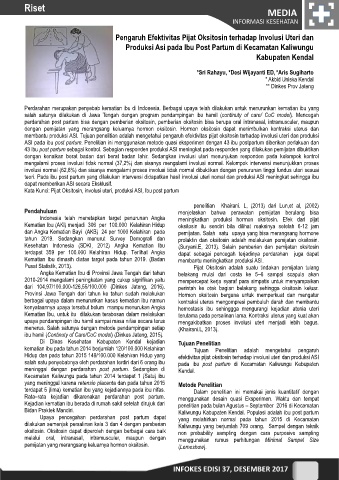 Hidup dan pada tahun 2015 149/100.000 Kelahiran Hidup yang efektivitas pijat oksitosin terhadap involusi uteri dan produksi ASI