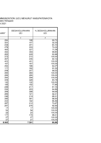 CAKUPAN DESA/KELURAHAN UNIVERSAL CHILD IMMUNIZATION (UCI) MENURUT KABUPATEN/KOTA