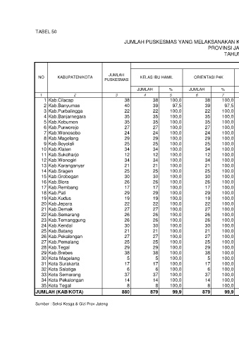 NO KABUPATEN/KOTA KELAS IBU HAMIL ORIENTASI P4K KESEHATAN KELAS 7 DAN KESEHATAN KELAS 1, 7,