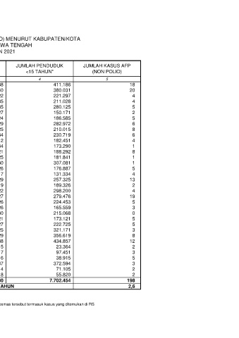JUMLAH KASUS AFP (NON POLIO) MENURUT KABUPATEN/KOTA