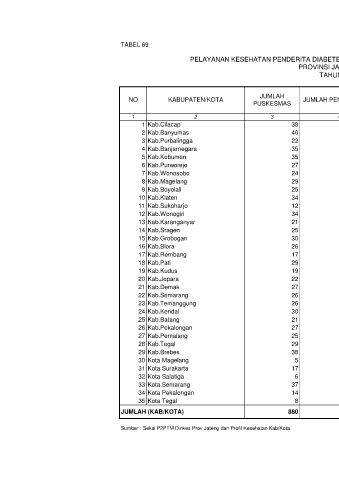 NO KABUPATEN/KOTA JUMLAH PENDERITA DM KESEHATAN SESUAI STANDAR