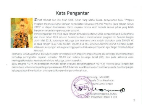 Buku progres PIS-PK ini diharapkan menjadi bahan evaluasi penyelenggaraan PIS-PK di Provinsi Jawa Tengah